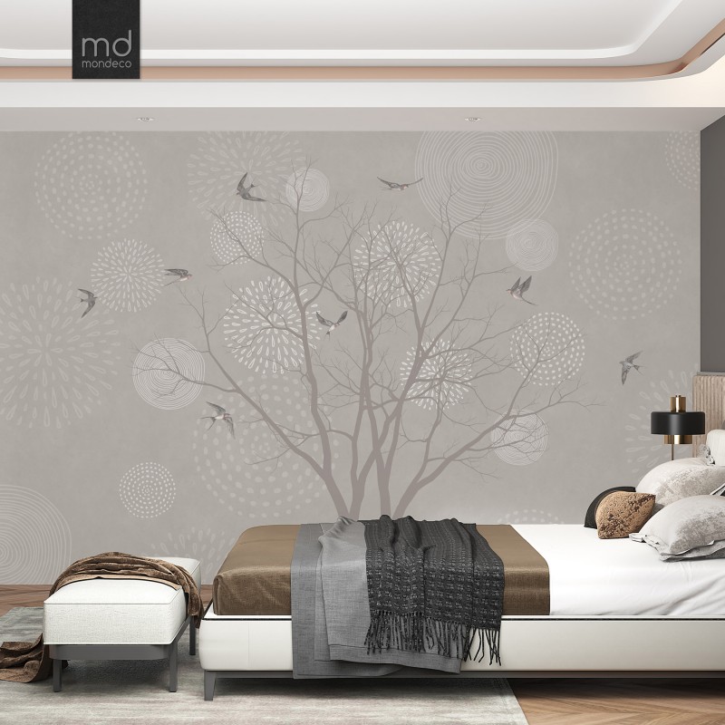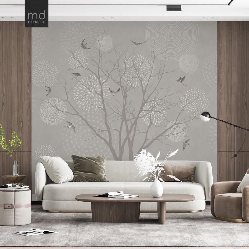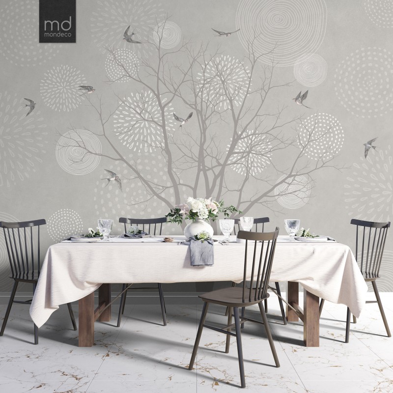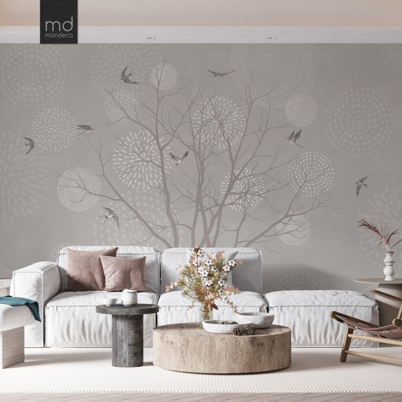 Бесшовные обои Ласточки и дерево (арт. zh14), Mondeco